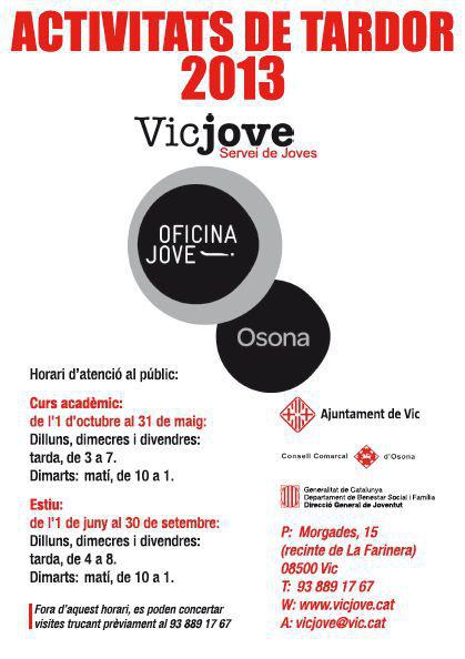 Per tenir més informació d'aquestes activitats, posa't en contacte amb Vicjove/Oficina Jove d'Osona. Personalment, per telèfon, per mail, per facebook o per twitter.