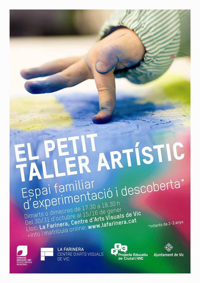 El Petit Taller Artístic és un espai d’experimentació i descoberta adreçat a infants de 2 a o 3 anys i les seves famílies, on l’infant podrà viure moments creatius, d’experimentació i de descoberta. Un espai on la família i l’infant aprendran una manera de relacionar-se amb l’art des del respecte, la llibertat i la creativitat.