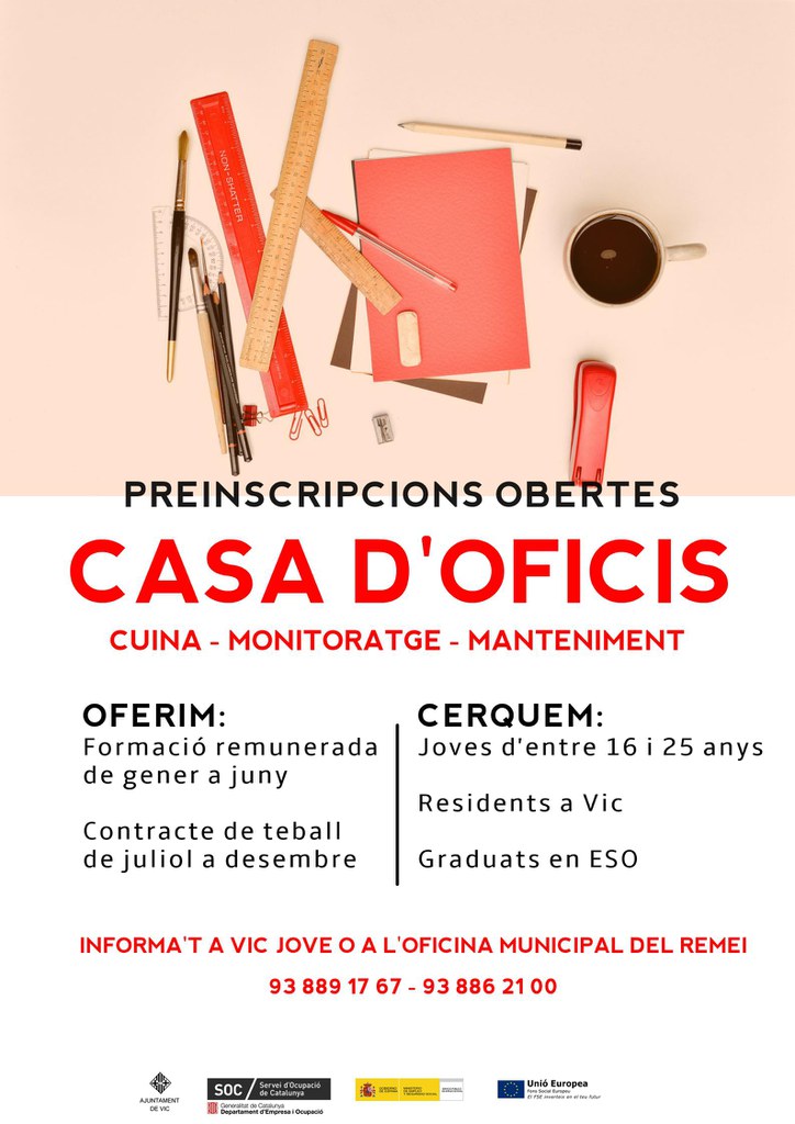 Obert el període de preinscripcions per participar al programa “Casa d’Oficis” de Vic