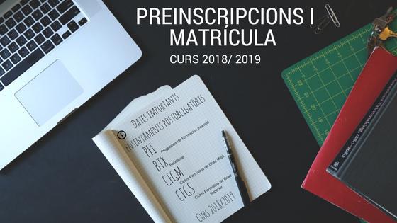 Preinscripció i matrícula curs 2018/2019 Ensenyaments postobligatoris.