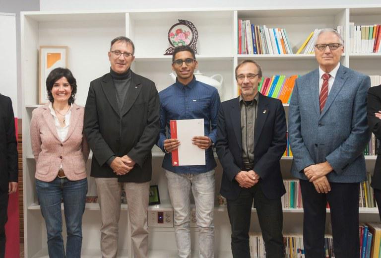 La segona Beca social a l’excel·lència universitària Ciutat de Vic, convocada per l’Ajuntament de Vic, ha estat lliurada avui a l’estudiant d’Enginyeria Biomèdica, Tarandeep Singh Mandahar. És el segon any que Mandahar rep aquesta beca, que li ha lliurat el regidor de Benestar Social i Família, Educació i Hisenda, Àlvar Solà i el rector de la UVic-UCC, Joan Masnou. A l’acte també hi ha assistit el director general de la FUB, Joan Turró, la secretària general, Àngels Crusellas, el gerent; Marc Mussons, i el tutor de l’alumne, Xavier Serra.