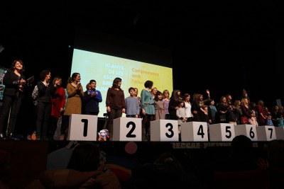 Els nens i nenes de les escoles bressol els verdaders protagonistes de la commemoració. Un representant de cadascuna de les deus generacions d’aquestes escoles bressol van pujar a l’escenari acompanyats per un membre de l’equip d’educadors i educadores i fent visible el projecte de tota una dècada.