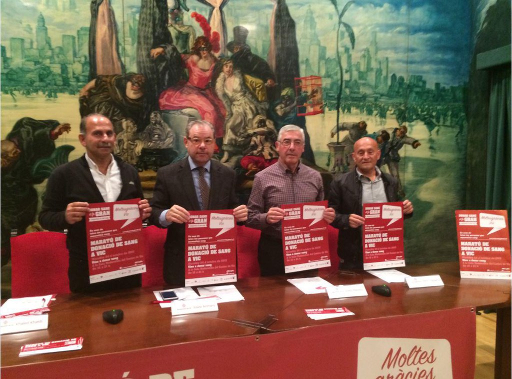 Avui al migdia s’ha fet la roda de premsa per presentar la 7a edició de la Marató de sang que, sota el lema “Donar sang et fa gran, comparteix la teva sang!”, tindrà lloc el proper dissabte 24 d’octubre, de 10 del matí a les 9 del vespre, a la Sala Modernista del Casino de Vic.