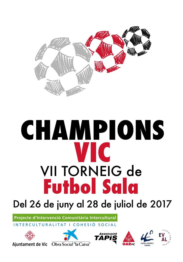 L'Equip d'Intervenció Comunitària Intercultural (ICI) en col·laboració amb l'Ajuntament de Vic i diverses entitats de la ciutat, organitza durant les tardes del 26 de juny al 28 de juliol el VII Torneig de Futbol Sala "Champions Vic".