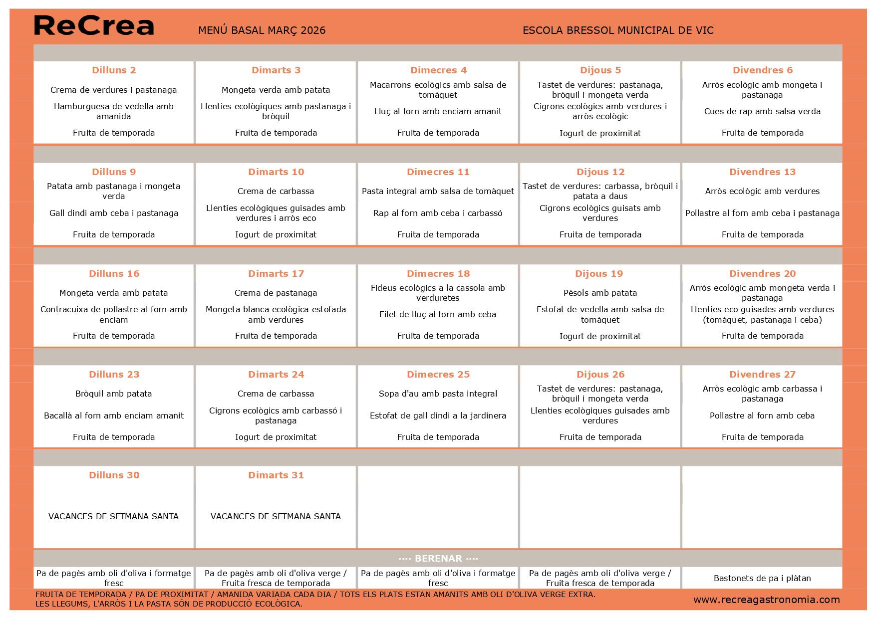 MENÚ MENSUAL- MARÇ