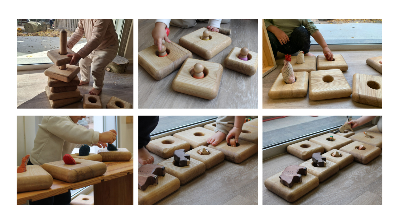 Observem diverses accions i intencions mentre combinen els elements, estableixen correspondències i obren la porta a noves possibilitats i aprenentatges, afavorint així un joc ric i creatiu.