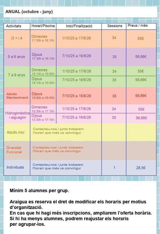 Els grups s'organitzaran per ordre d'arribada de les inscripcions.