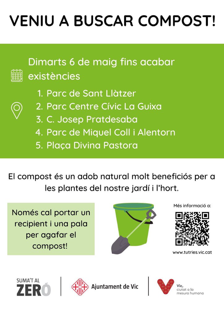 - L'Ajuntament de Vic a través de la regidoria de Medi Ambient posa a disposició de la ciutadania 5 punts d’autoservei de compost situats en diferents espais de la ciutat.