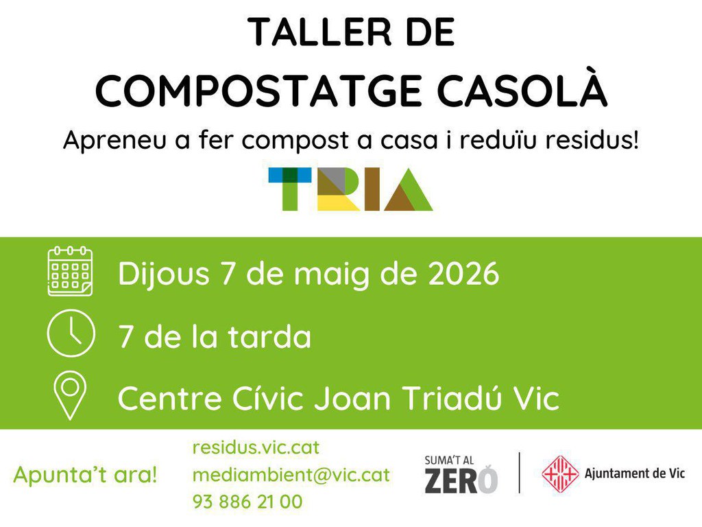 - Taller de compostatge casolà per a ciutadania i persones interessades que vulguin iniciar-se a la pràctica de l'autocompostatge a la ciutat de Vic.