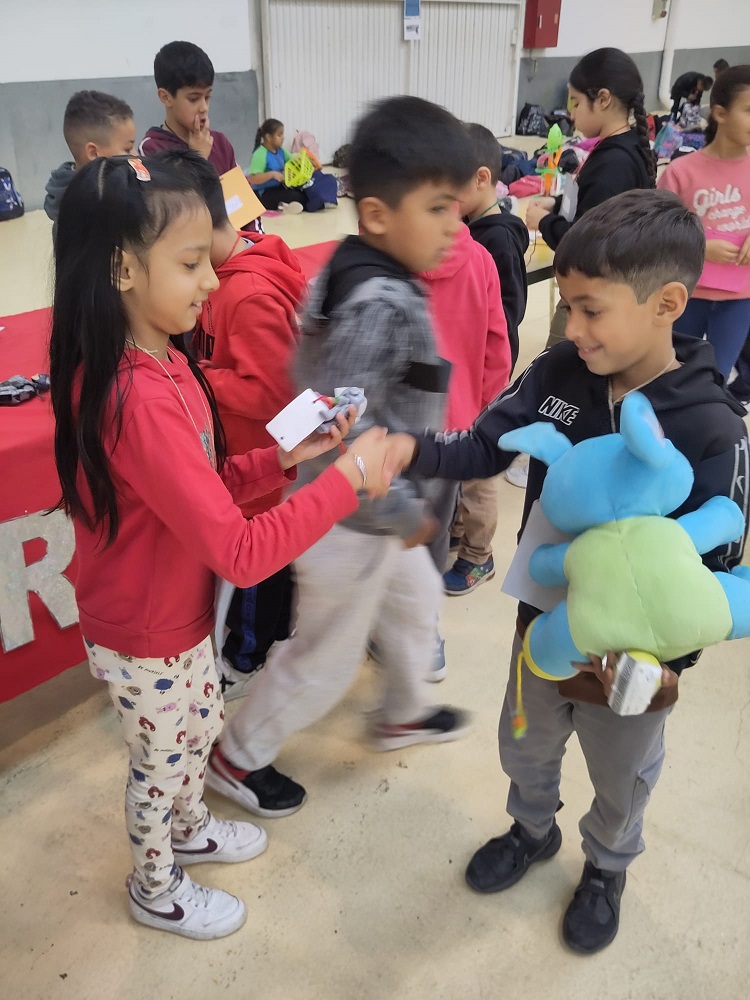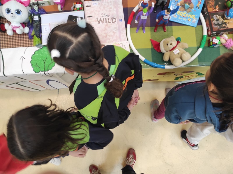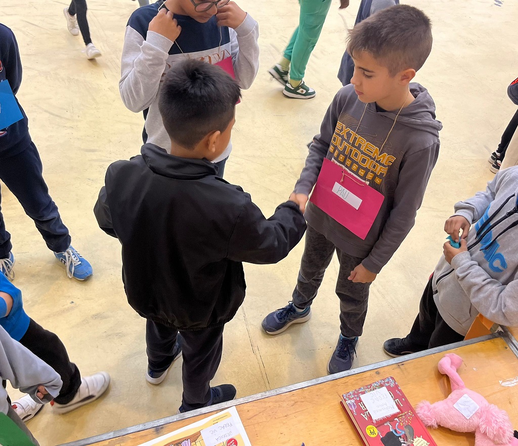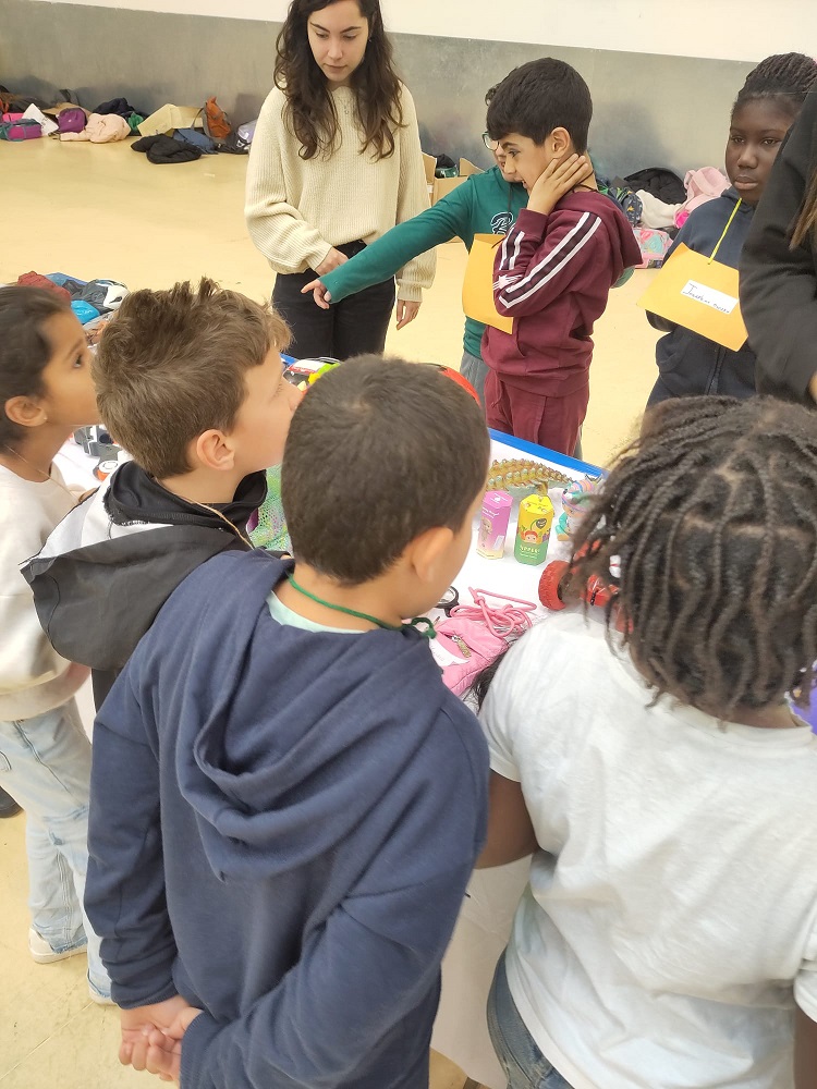 La dinamitzadora va explicar els passos del mercat, fer una ronda per observar els objectes que hi havia sobre les taules per intercanviar i, seguidament després del senyal “gong”, va començar el moment més esperat: buscar els propietaris dels objectes que més agradaven a cadascun dels nens i nenes per poder intercanviar-los.