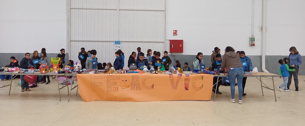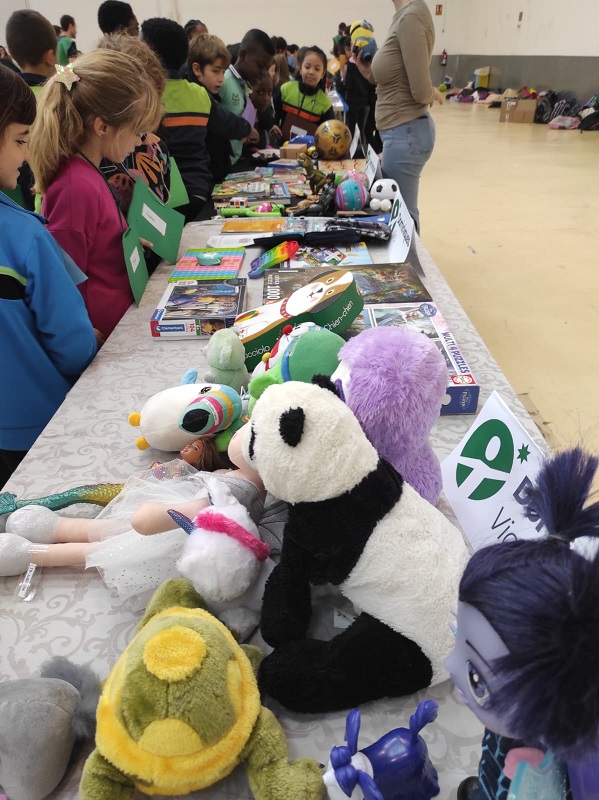 Puntuals a la cita anual, els nens i nenes de 3r o 4 de primària de les escoles de Vic acompanyats del professorat van arribar al recinte Firal El Sucre, podien portar un total de quatre objectes, normalment llibres, joguines o material esportiu, en bon estat i per intercanviar amb la resta de companys de l’escola o d’altres escoles de la ciutat. Durant el matí van participar uns 260 alumnes de cicle mitjà de 7 escoles de Vic: Sagrat Cor, Dominiques, Centre, Joaquim Salarich, Sentfores, FEDAC i El Petit Miquel. La finalitat és que els objectes se’ls hi doni un nou ús, reutilitzar i allargar la vida útil d’aquestes joguines.
