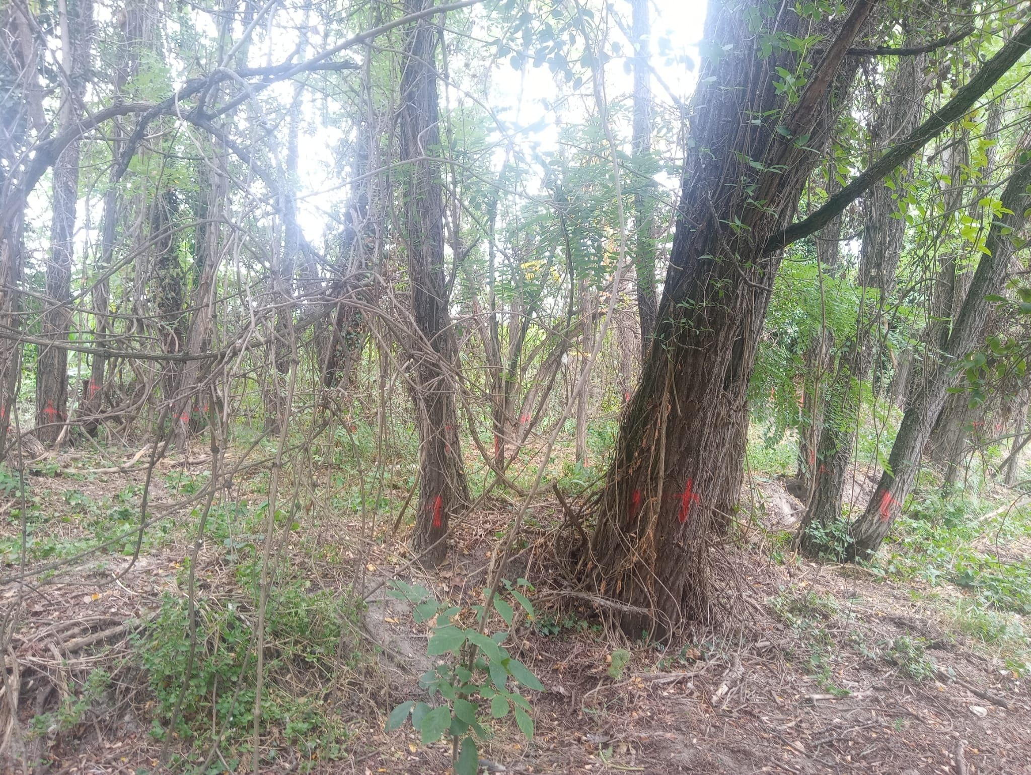 També s'ha dut a terme la mort en peu de falses acàcies (Robinia pseudoacacia), una espècie exòtica i invasora. Per fer-ho, s'ha perforat cada 5 cm la base de l'arbre amb un trepant i s'han injectat 20 mL d'una solució al 50% d'herbicida.