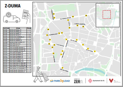 Davant el repte de millorar la gestió de les zones de càrrega i descàrrega de mercaderies de la ciutat, i millorar la rotació de les zones amb major demanda per part dels transportistes i resta de professionals que en poden fer ús, l’Ajuntament de Vic ha creat una nova zona de regulació d’aparcament dedicada a la distribució urbana de les mercaderies i altres (Z-DUMA).